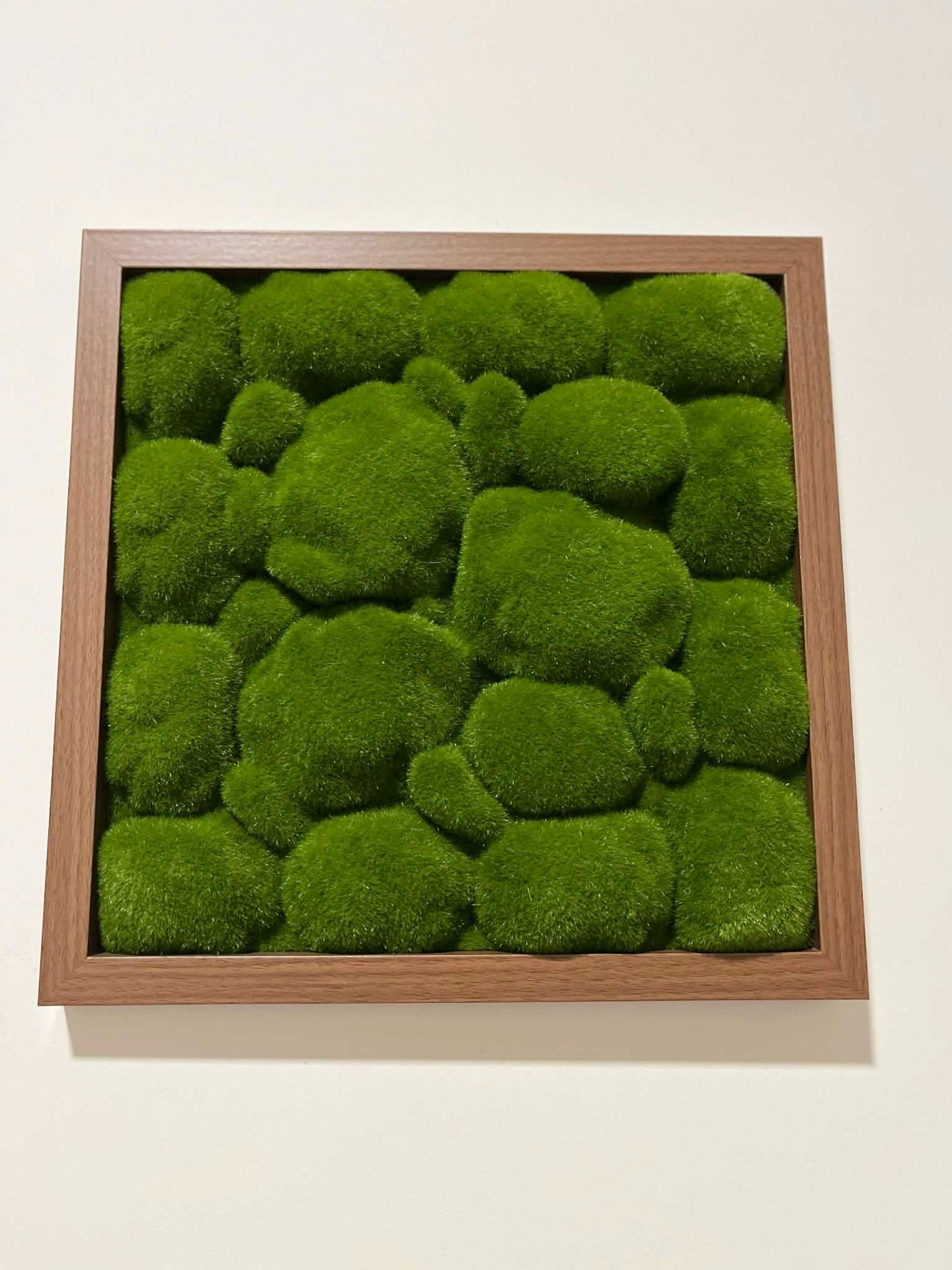 Tento jedinečný 3D obraz je vytvořen z kvalitního umělého mechu s výrazným plastickým efektem. Mech tvoří měkké, zaoblené "polštářky", které připomínají přírodní mechové ostrůvky. Díky tomu působí obraz živě, prostorově a dodává interiéru příjemný biologický charakter.